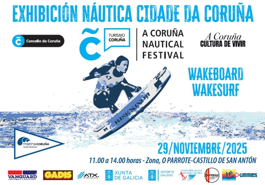 A Federación Galega de Esquí Náutico e Wakeboard publica a programación horaria da Exhibición Náutica Cidade de A Coruña, que terá lugar o 29 de novembro no tramo entre O Parrote e o Castelo de San Antón.